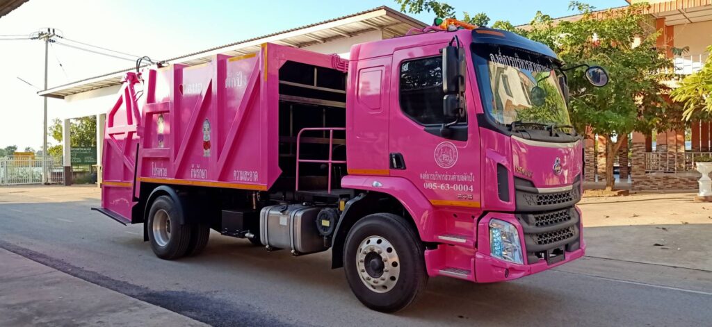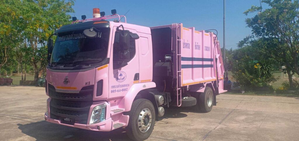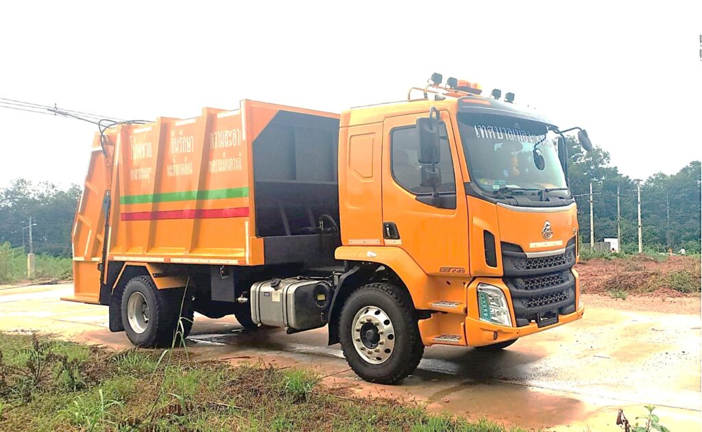 รถบรรทุกขยะมูลฝอยแบบอัดท้าย YUCHAI M3 ตัวรถชนิด 6 ล้อ เครื่องยนต์ดีเชล ตอนหน้าเป็นหัวเก๋งสามารถบรรจุพนักงานได้ ตอนท้ายหลังเก๋งติดตั้งตู้บรรทุกขยะมูลฝอย มีปริมาตรความจุตามทางเลือก และสามารถรับน้ำหนักขยะมูลฝอยไม่น้อยกว่า 5,000 กิโลกรัม ด้านท้ายตู้บรรจุขยะมูลฝอยมีการติดตั้งเครื่องอัดขยะมูลฝอย ทำงานด้วยระบบไฮดรอลิกส์ สามารถผลิตแรงดันไม่น้อยกว่า 2,500 ปอนด์ต่อตารางนิ้ว มีโคมไฟสัญญาณวับวาบสีเหลืองพร้อมระบบสัญญาณไฟต่าง ๆ ตามกรมการขนส่งทางบกกำหนด และตามความจำเป็นในการปฏิบัติงาน